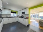 The property features a bright and welcoming lounge with open stairs and French doors leading through to a modern, high-gloss kitchen. The kitchen benefits from integrated appliances and ample storage, while the open-plan conservatory adds a sense of space and natural light, creating a perfect area for dining or entertaining.