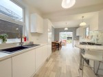 Renovated and maintained to an exceptional standard throughout, the interior opens with a spacious and welcoming hallway leading to a stylish lounge, formal dining room, and a well-appointed kitchen with access to a charming rear porch. There is a third reception room, currently arranged as a dining area, which flows seamlessly into a bright and airy conservatory. A ground floor cloakroom adds further practicality.