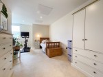 There are two generously proportioned double bedrooms, and a modern family bathroom fitted with a pristine three-piece suite, shower over the bath, and a sleek glass screen. Additional touches include made-to-measure window blinds throughout.